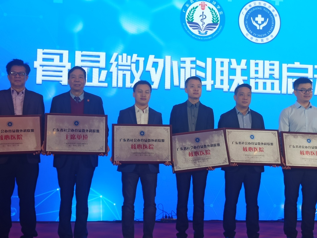 會(huì)上,舉辦了廣東省社會(huì)辦醫(yī)骨顯微外科聯(lián)盟啟動(dòng)儀式。該聯(lián)盟由廣州和平骨科醫(yī)院牽頭組織,23家核心醫(yī)院共同組成,廣州和平骨科醫(yī)院被授予“骨顯微外科聯(lián)盟主席單位”。黃東院長(zhǎng)代表醫(yī)院上臺(tái)領(lǐng)取牌匾。